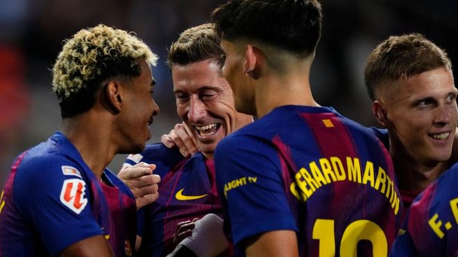 下半场易边再战,巴塞罗那进行换人调整,奥尔莫替补上场,换下德罗-费尔南德斯。第48分钟,赫拉德-马丁起脚远射,皮球稍稍偏出左侧立柱。第58分钟,巴塞罗那继续换人,亚马尔替补上场,换下巴尔德吉。这次换人起到了立竿见影的效果。只过了1分钟,亚马尔就送出助攻,莱万多夫斯基头球顶进!巴塞罗那反超比分!
