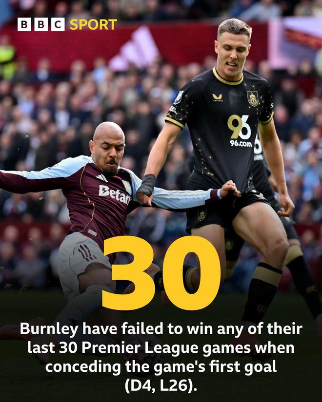 维拉稳了?伯恩利近30场先丢球英超联赛最终4平26负
